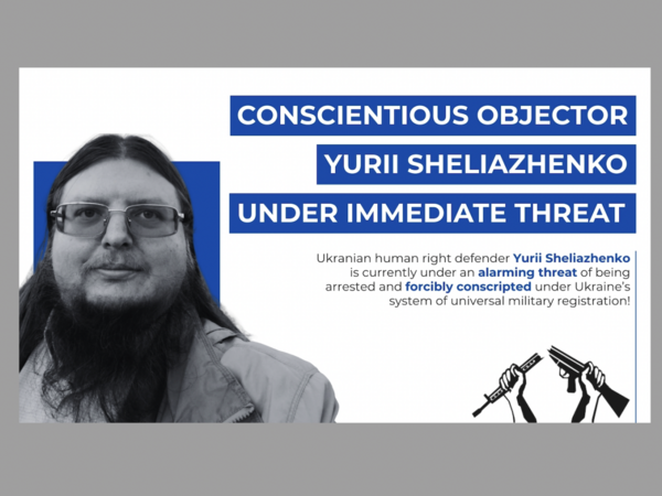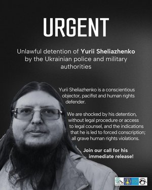 Am 19. März 2026 wurde der ukrainische Pazifist, Menschenrechtsverteidiger und Kriegsdienstverweigerer Jurij Scheljashenko von den ukrainischen Behörden in Kyjiw festgenommen. Nun droht ihm die Zwangsrekrutierung durch das ukrainische Militär.