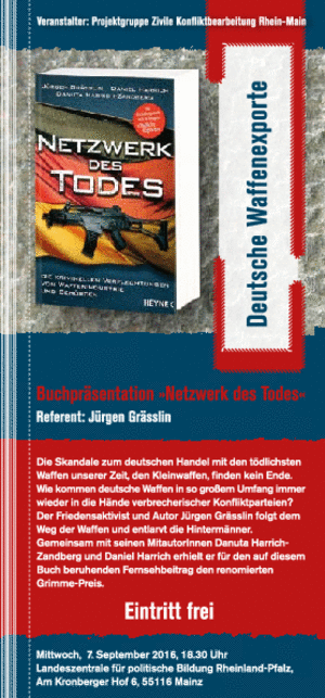 Mit Jürgen Grässlin, Autor von "Netzwerk des Todes" und "Schwarzbuch Waffenhandel", Bundessprecher der DFG-VK, Sprecher der "Aktion Aufschrei - Stoppt den Waffenhandel"